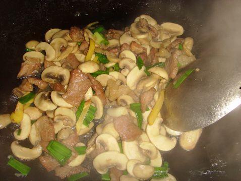 将磨菇切片,佛手瓜切成条状,用蒜末、生抽、盐等调料炒香,最后加入磨菇和佛手瓜一起翻炒,出锅前撒上葱花即可。
