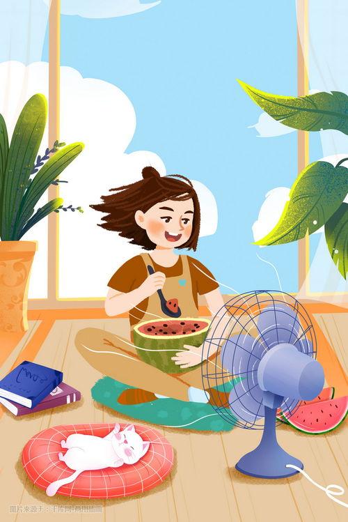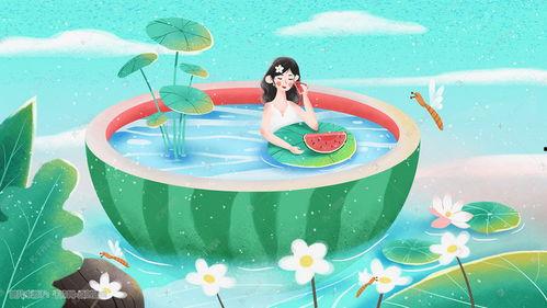 比如,这张《夏日西瓜派对》的插画,画面中一个穿着粉色连衣裙的小女孩,正坐在草地上,手里捧着一个大西瓜,脸上洋溢着幸福的笑容。背景是一片绿油油的草地,天空湛蓝,几朵白云悠悠地飘过。这样的画面,是不是让你瞬间感受到了夏日的清凉和快乐?