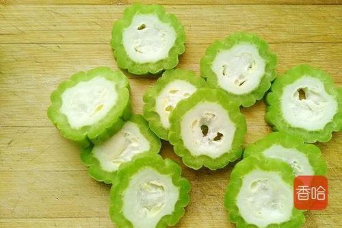 2. 凉瓜处理:将凉瓜洗净,切成约2厘米厚的片,用盐腌制10分钟,去除苦味。